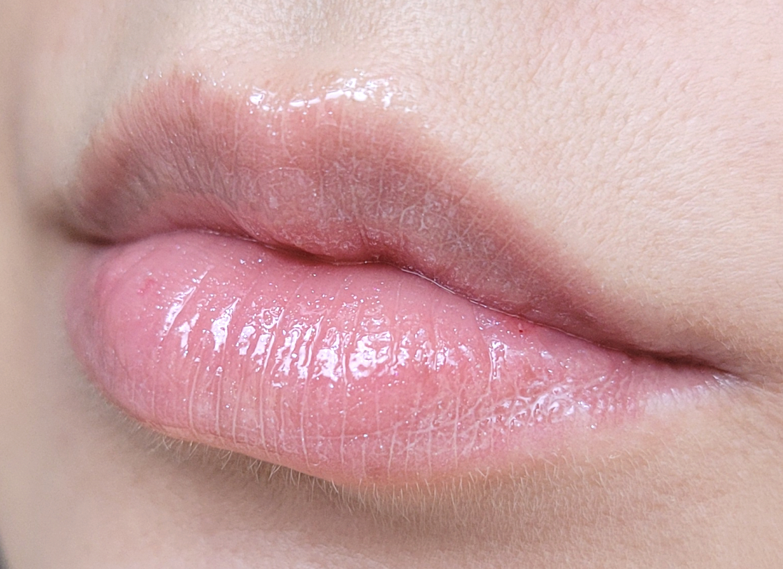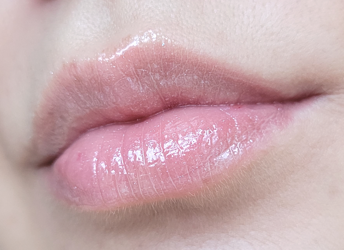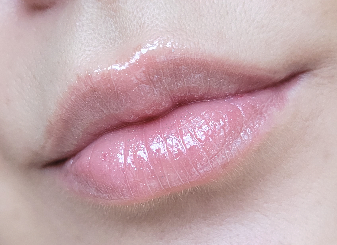 Нанесла блеск на неподготовленные губы в один слой.