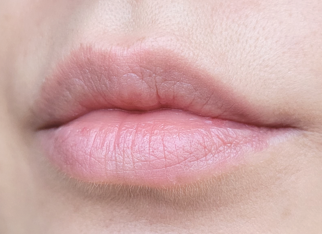 Видно, что оттенок немного выбеливает губы и немного подчеркнул рельеф-сеточку, особенно на верхней губе.