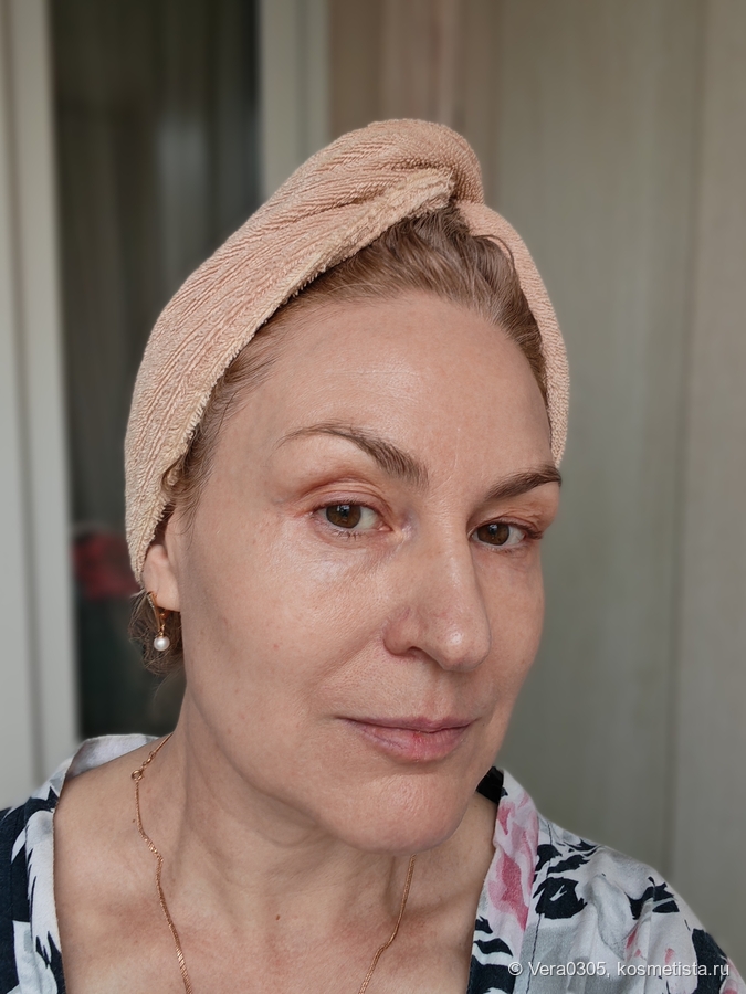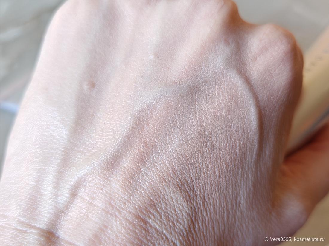 Для меня светловат, но видно, что маскировка отличная, однако, текстуру кожи не заблюрил. Нужна пудра, чтобы смягчить рисунок кожи и блеск.