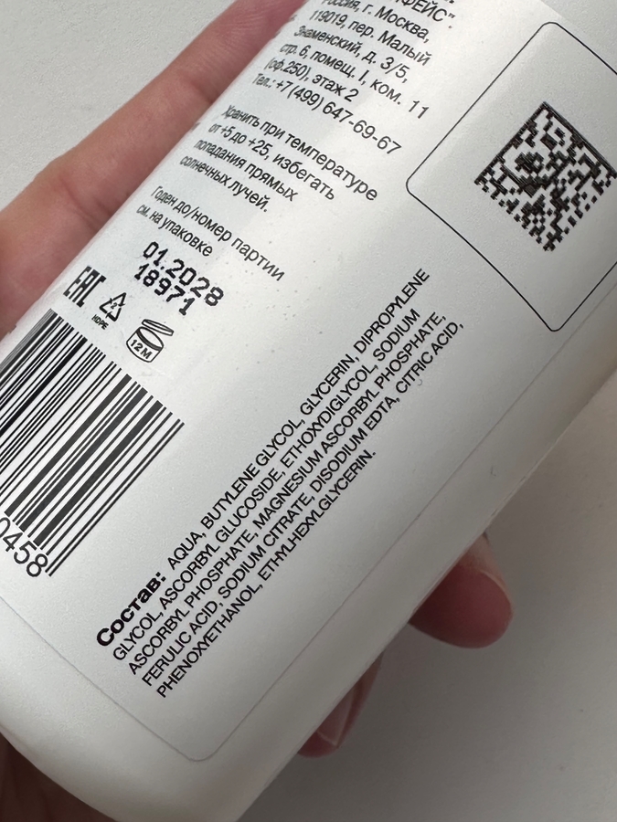 🍃 Здесь связка трёх стабильных форм витамина С: аскорбил глюкозид + SAP + MAP с общей концентрацией 2%.