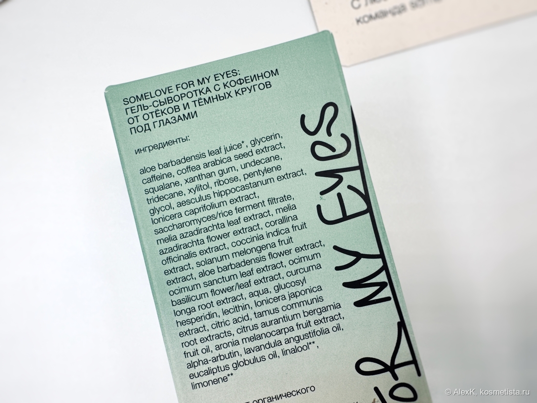 - Кофеин 3% — местная звезда. Убирает отёки и улучшает микроциркуляцию. Работает мощно, потому что в на редкость хорошей концентрации.