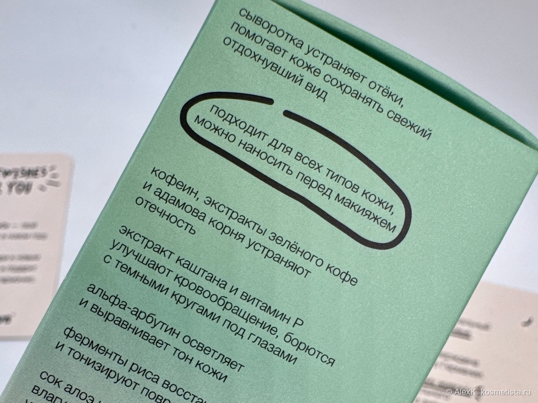 Но давайте честно: мы здесь собрались не ради спасения мира от свободных радикалов. Меня интересовали отёки и тёмные круги. И вот тут начинается самое интересное.