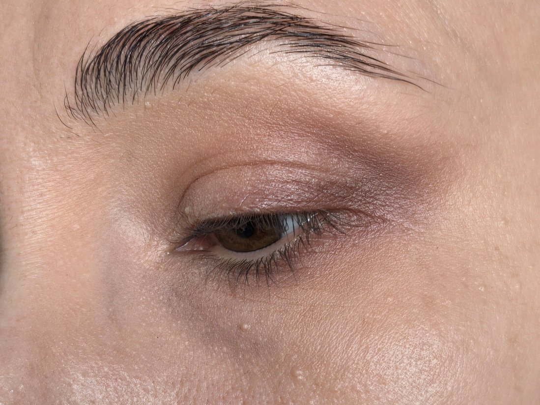 При этом ни сам консилер, ни тени, никуда без припудривания не скатываются. Поверх нанесла клей для блёсток от Инглот, и консилер никуда не уехал, не проелся и т.п.