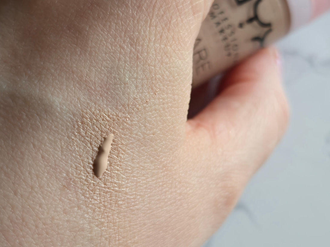 Интересно, как себя ведет пигмент на коже. На руке видно, что на месте, где был свотч, кажется, что продукт мне темноват и вообще окисляется в жёлый на тон точно темнее. Но давайте посмотрим, как оно на самом деле.