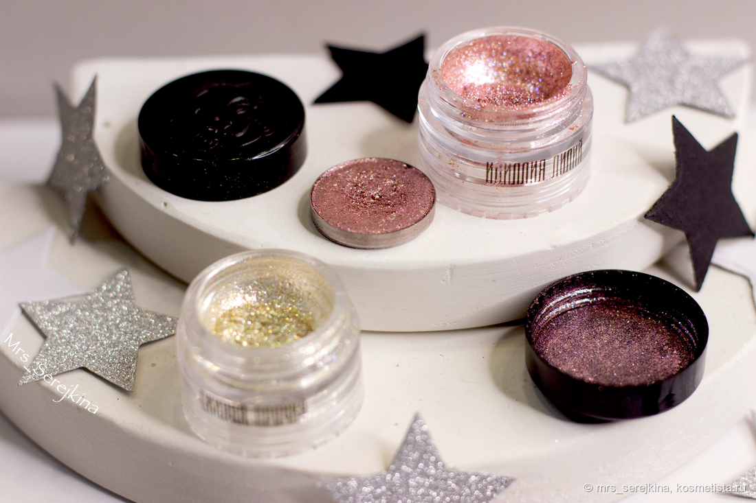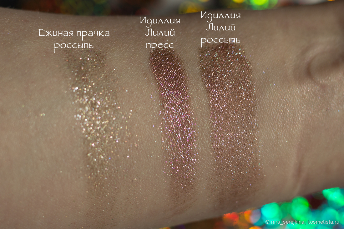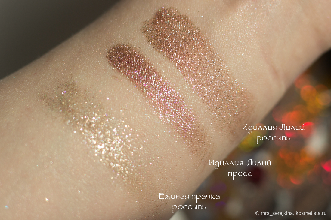 Сверкалок всех видов и мастей у меня хватит на десятки постов, но сегодня захотелось показать пигменты Тамми. Их, правда, тоже на десяток-два обзоров наберется, но я остановилась на рассыпчатом пигменте Ежиная прачка и Идиллия Лилий — она у меня в двух форматах сразу (монетка из палетки Бархатный Звездный Тюлень).