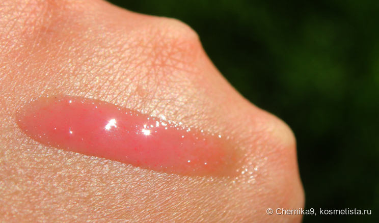 На солнце тинт уходит не в розовый, а в какой-то бледно-коралловый цвет. Мне нравится, как он блестит, но видно, что текстура неоднородная.