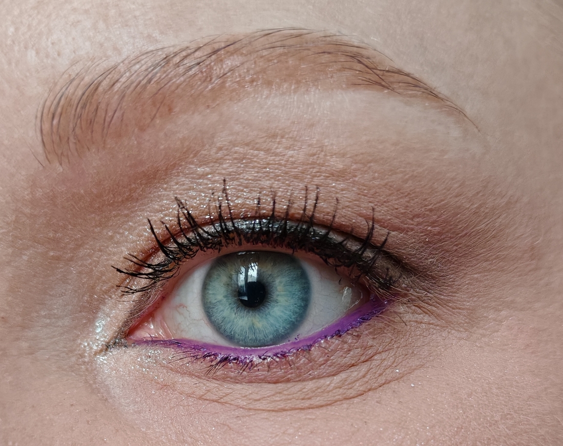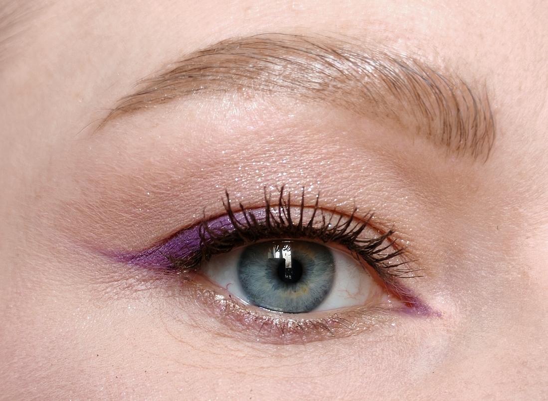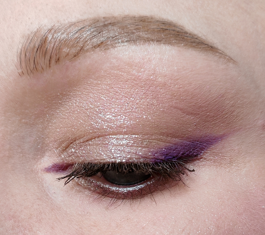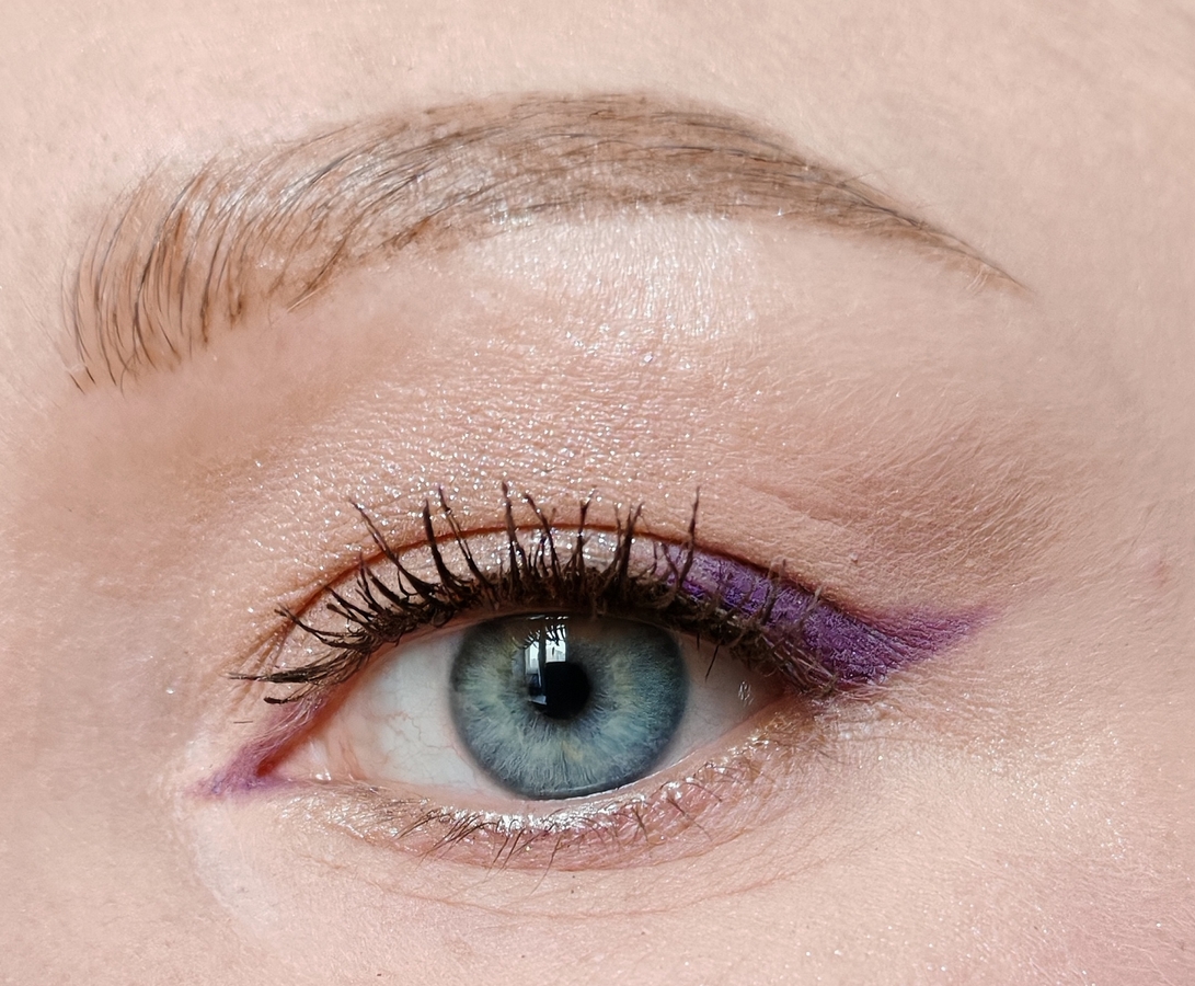 Чаще всего я использую этот карандаш для стрелок. Сначала делаю «набросок», потом наслаиваю и уплотняю цвет. Стрелка на базе/подложке/сухих тенях держится весь день не тускнея.