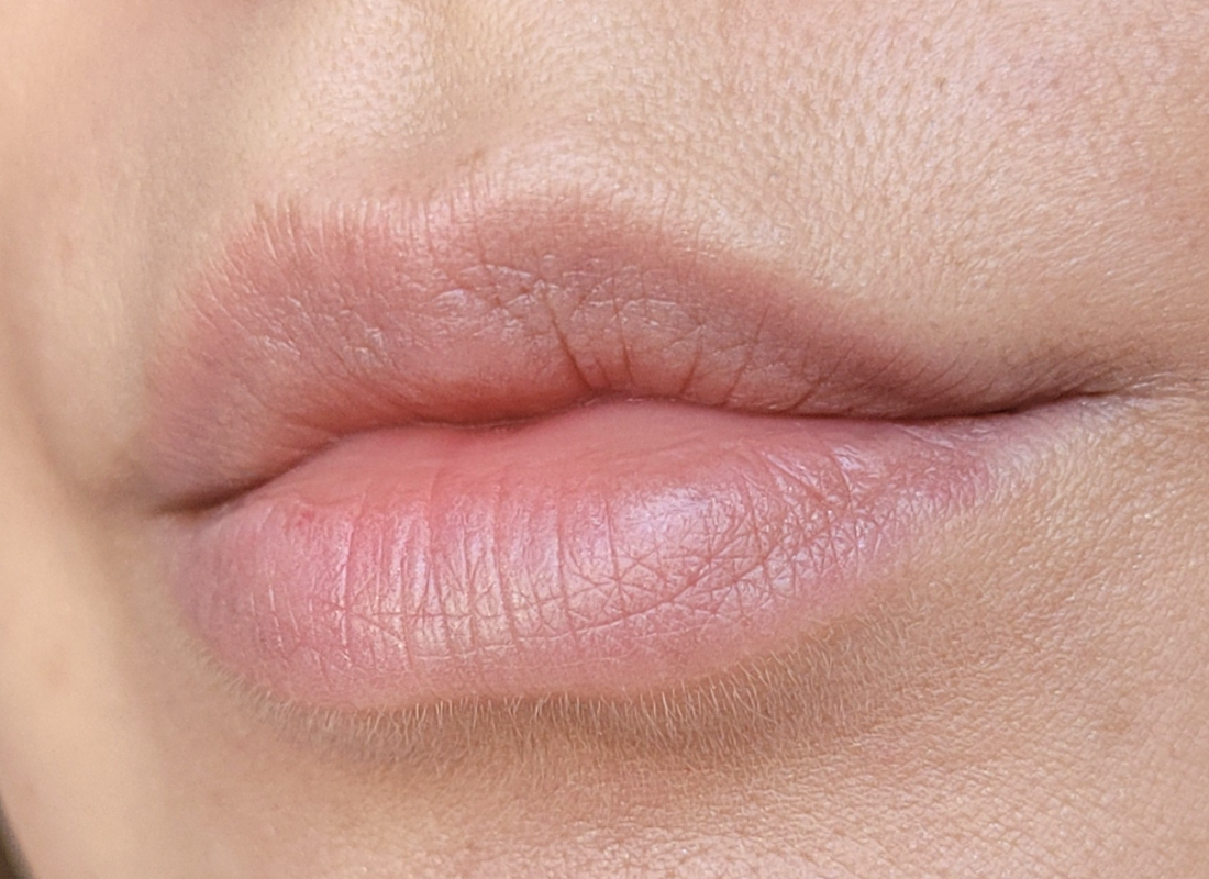 Мои губы тёплого оттенка, имеют достаточно выраженный рельеф и веснушки. Серьёзных шелушений нет, но кожа губ довольно сухая.