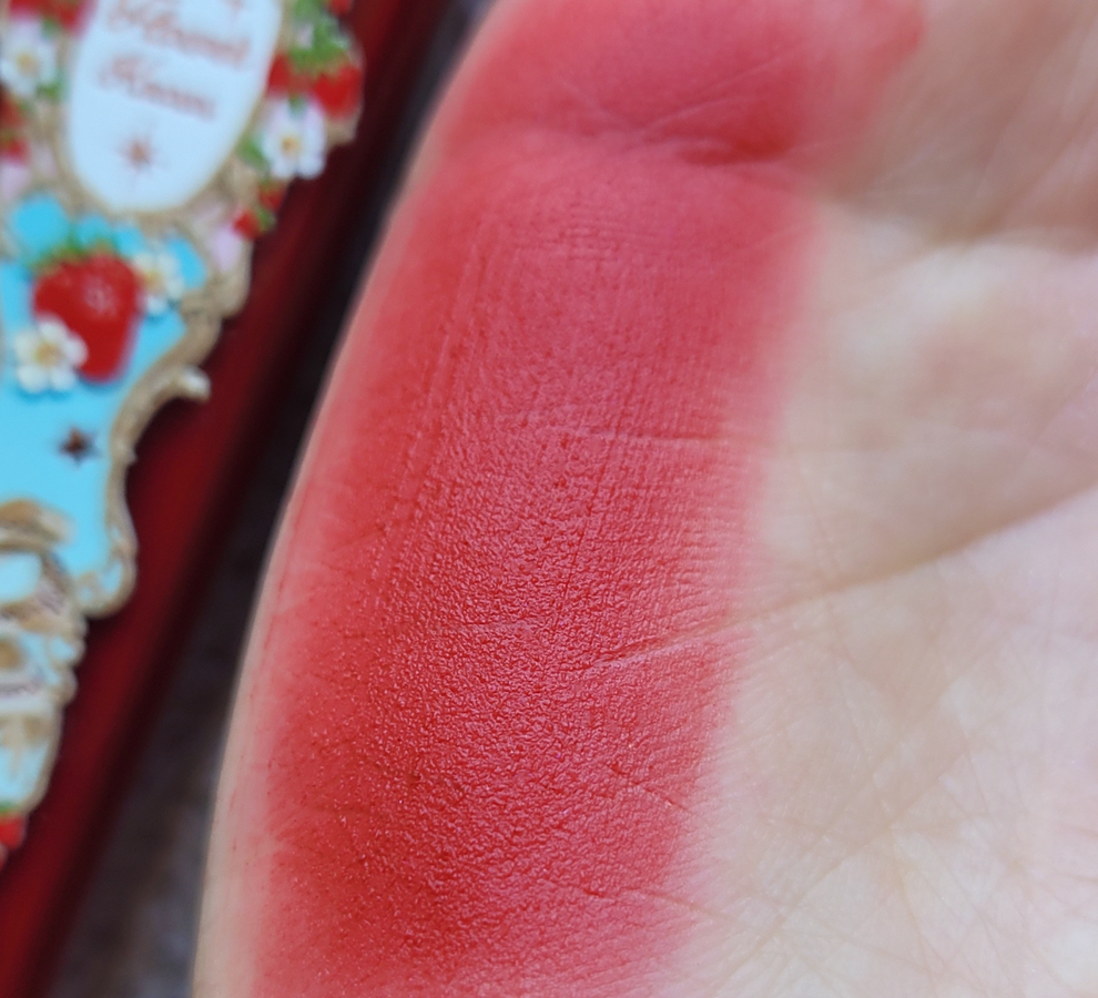 Всего в линейке Strawberry Rococo было выпущено 9 оттенка матовых помад. Путем долгий душевных метаний выбор пал на шикарный красный #S08 Velvet Redwood.