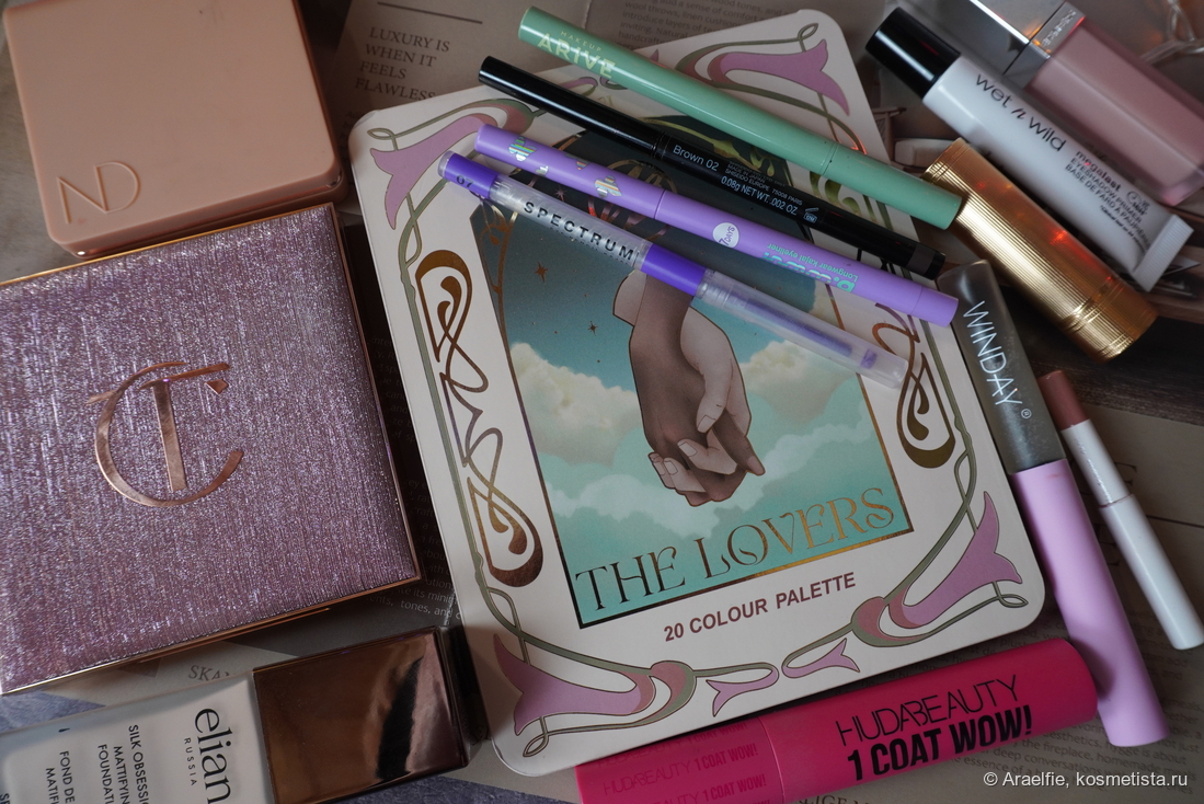 В этом месяце снова очень красивое сочетание оттенков, смотря на которое сразу же мне представилась палетка Cosmic Brushes — The Lovers. И, сколько бы оттенков, подходящих этому флешмобу, я ни подобрала из своей коллекции, всё же моё сердце с самого начала было отдано именно этой палетке.