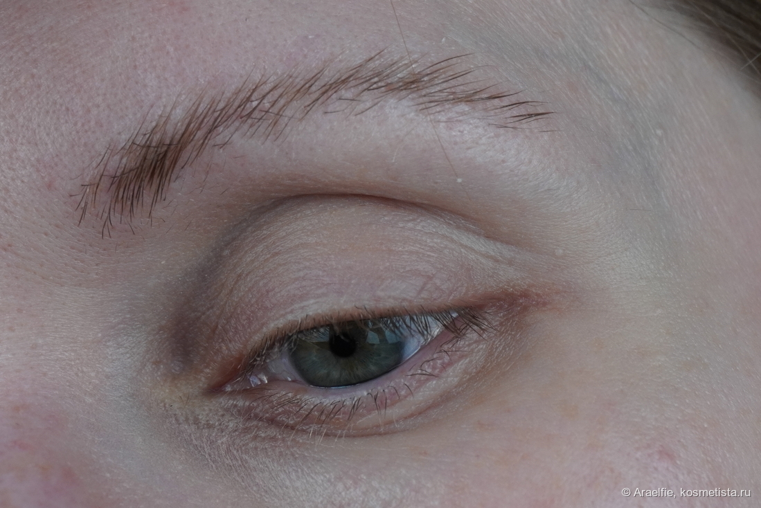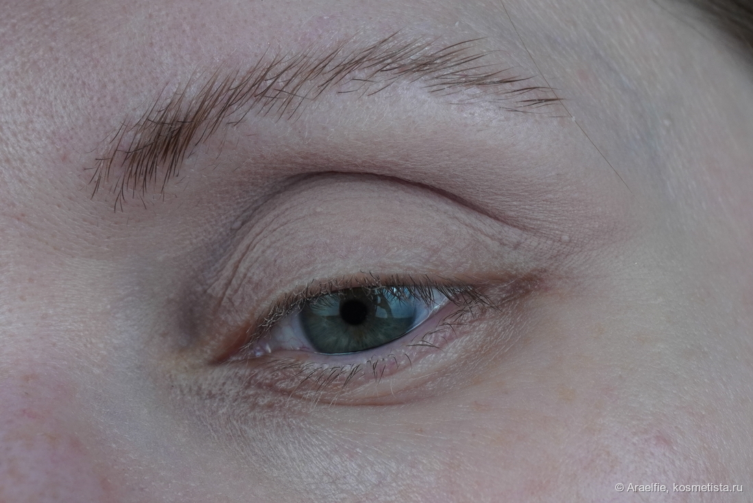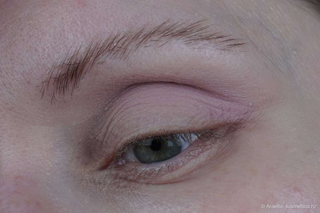 Фото без макияжа. Ну, почти без макияжа: брови уложены гелем Winday и под глаза был нанесен розовый консилер, а на веко уже нанесла базу под тени и немного припудрила неподвижное веко тональником Natasha Denona.