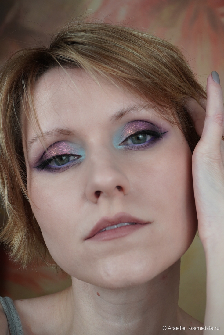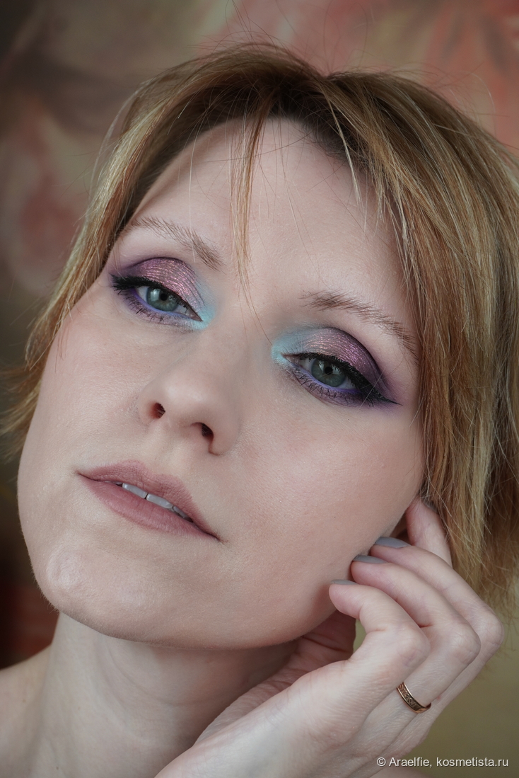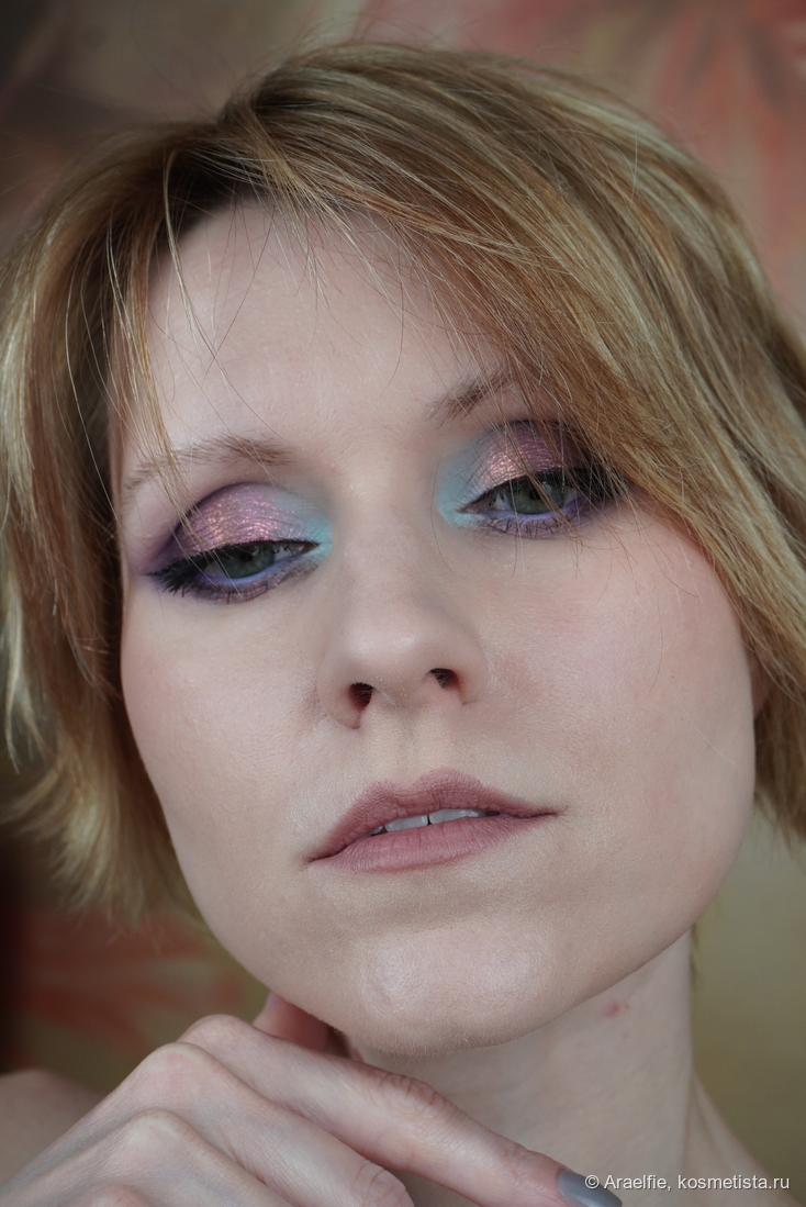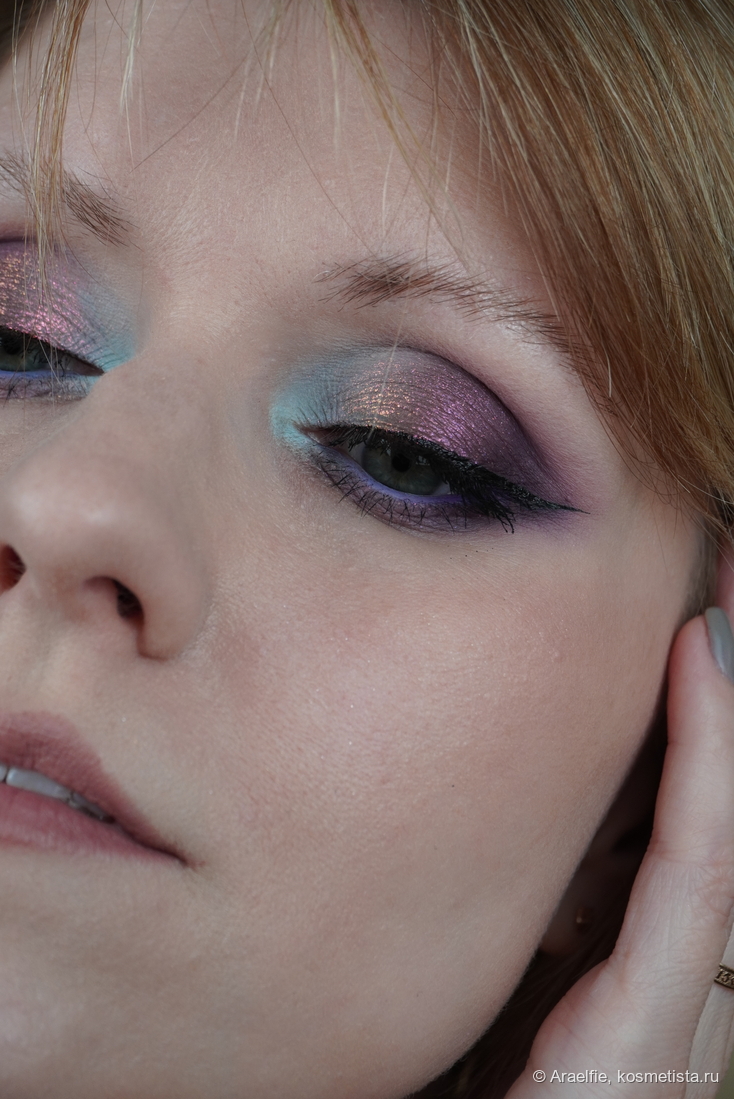 А ближе к голубому оттенку — Connection. Да, в рефиле оттенок казался более сиреневым, но в макияже появился золотистый блик: