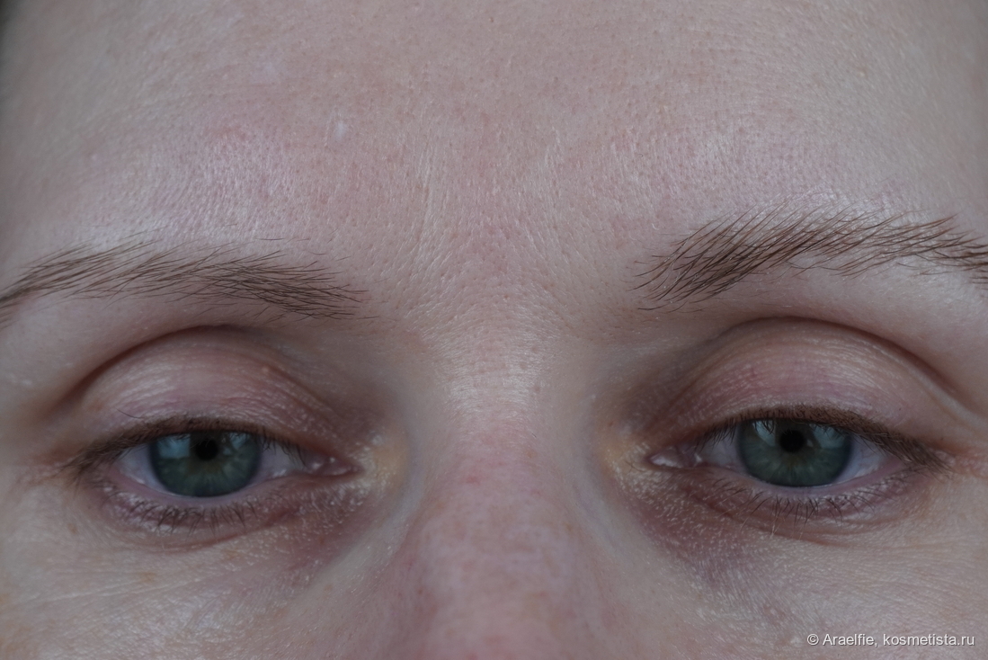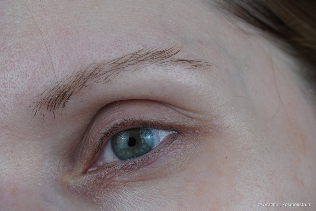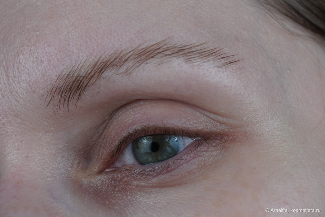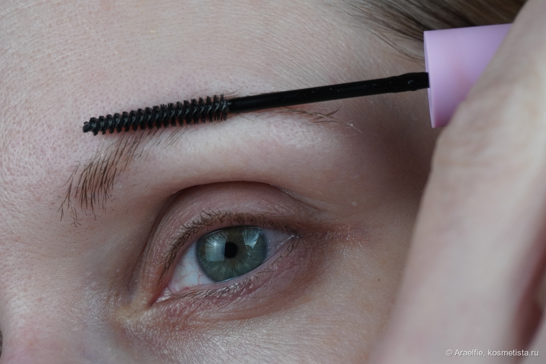В итоге получается довольно аккуратный вид, сам гель практически не заметен, почти не блестит, и при этом на бровях нет сильно большого ощущения клея. Сначала я даже не думала, что это будет долго держаться, потому что обычно подобные формулы, которые я почти не ощущаю на бровях, не держат мои брови. Но я была очень рада ошибиться, гель держит брови в нужном направлении в течение всего дня!