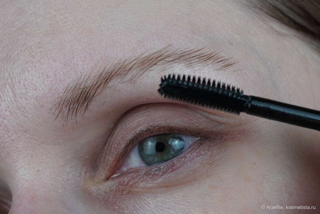 При необходимости могу залезть щеточкой еще пару раз в баночку и дополнительно нанести средство на брови. Несмотря на то, что у родной щеточки маленькие щетинки, она все равно не достаточно прижимает мои брови и они все равно продолжают падать вниз: