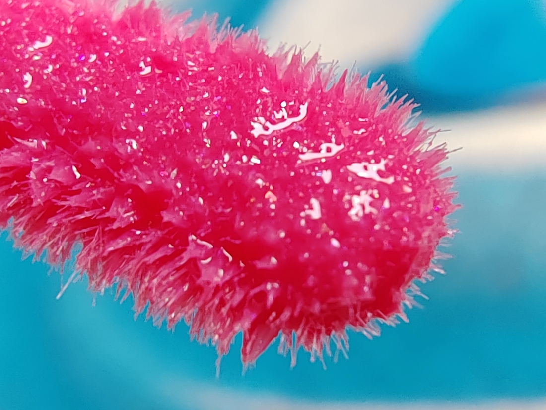 Сходит цветной пигмент и глянец не заметно, оставляя после себя мягкие губы со сверкающей россыпью мелких блесточек.