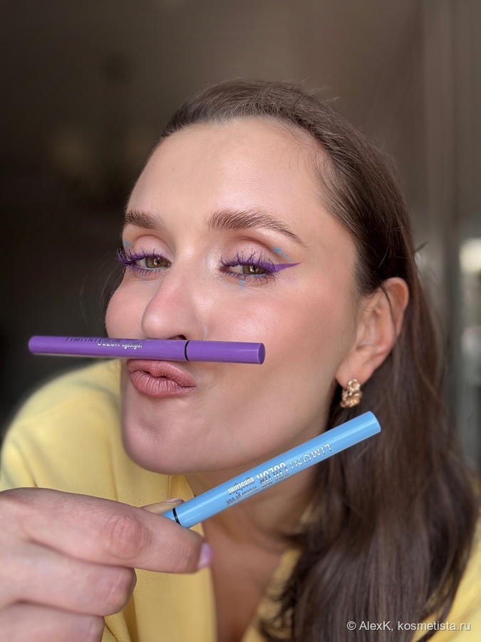 - Limoni Color Waterproof Eyeliner, тон 6 (фиолетовый) и тон 5 (голубой).