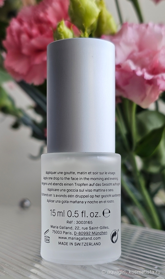 Упаковка у бустера миниатюрная. Объём продукта 15 мл, срок годности после вскрытия 9 месяцев, сделано в Швейцарии. Колпачок плотно, но мягко закрывает помпу.