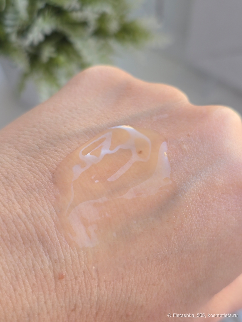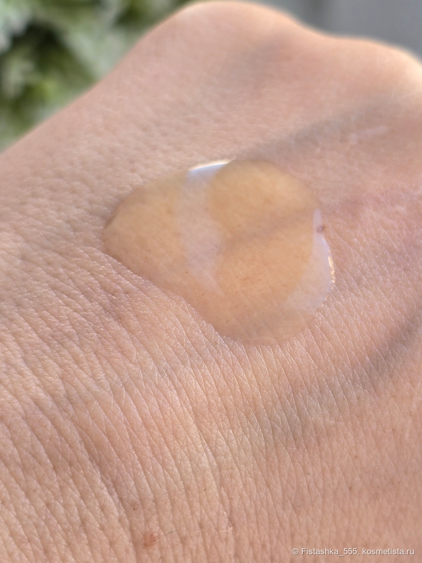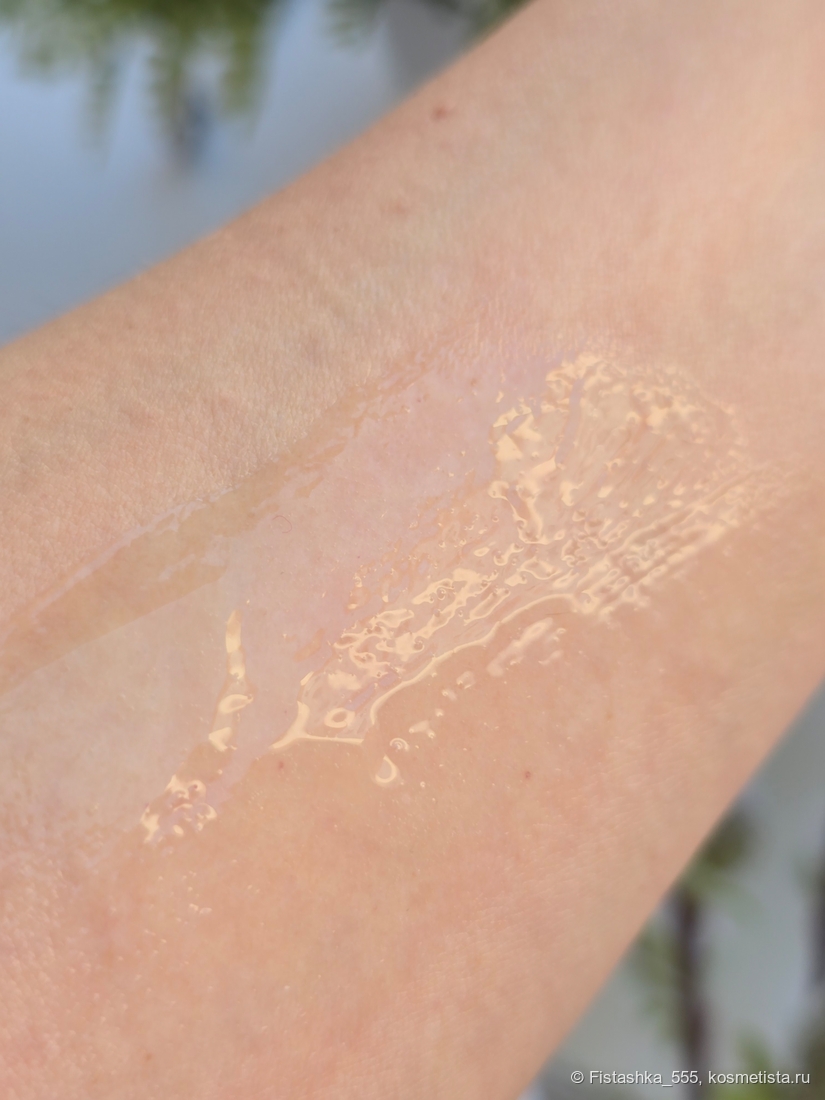 Текстура: Лёгкий жидкий гель золотистого оттенка. Впитывается мгновенно, оставляя ощущение свежести.