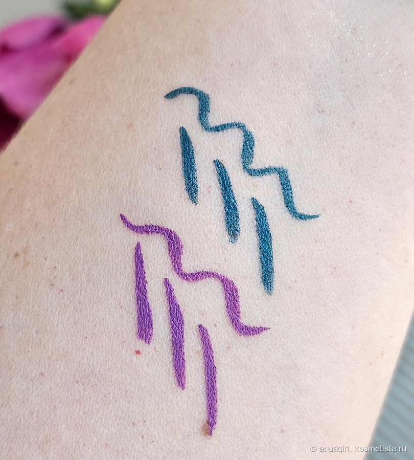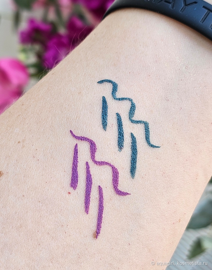 Стойкость отличная. На моём не самом простом веке подводка не смазывается, не отпечатывается. Легко смывается и мицеллярной водой, и гидрофильным маслом. А вот свотч на руке влажной салфеткой не отмывался совершенно, пришлось идти за средством для снятия макияжа.