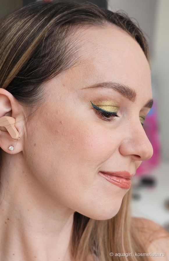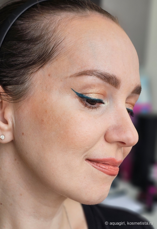 Несколько лет назад я пришла к выводу, что чёрные стрелки для меня слишком строгие и обязывающие (и подчёркивают нависшее веко), а вот цветные можно носить и ни в чём себе не отказывать.