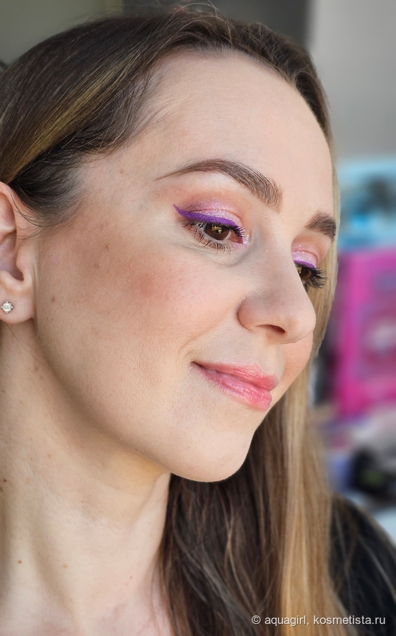 06 — фиолетовый. Обычно, такие оттенки теней, карандашей и подводок оставляют розовый тинт на коже. Но эта подводка — нет. Большой плюс.