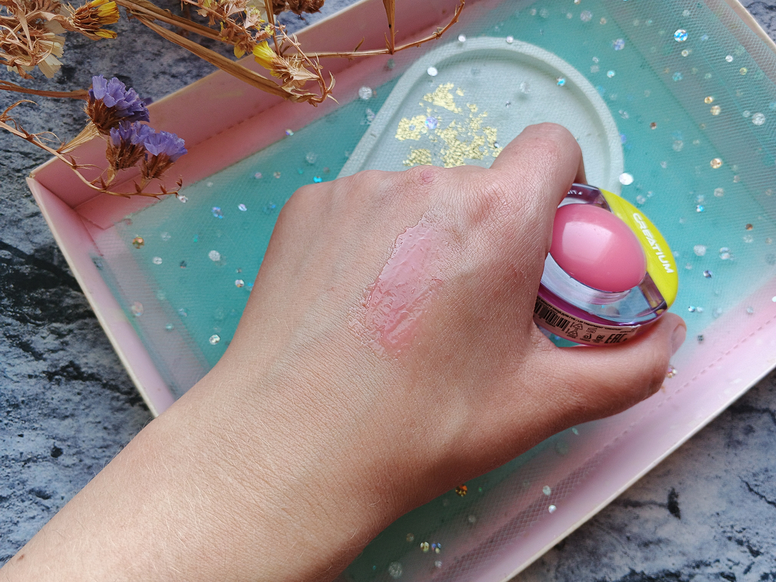 Продукт заявлен как средство 3 в 1 — бальзам, праймер и ночная маска. Я использую его в течение дня в качестве бальзама. Мне нравится и его нежный оттенок, и текстура. Он равномерно распределяется по коже, не затекает в складочки, придаёт губам лёгкий блеск. Увлажняющие свойства у него очень хорошие, коже губ комфортно.