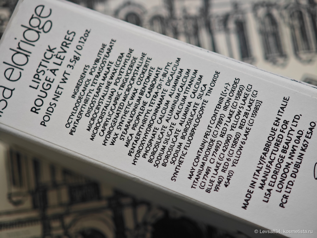 Упаковку помад Лизы Элдридж не спутаешь ни с чем. Губы в полуулыбке, родинка, размашисто, на весь холст.
