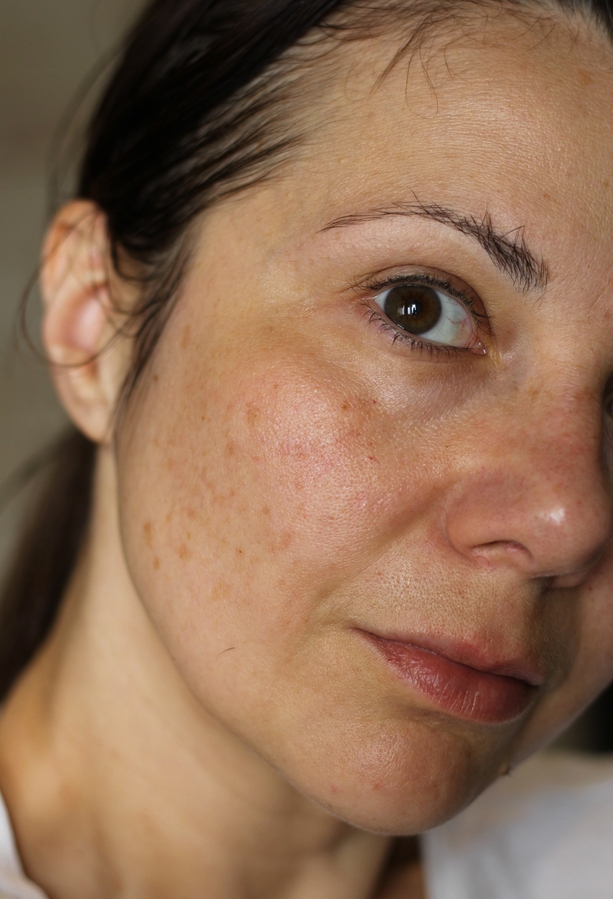 В этом году я просто расслабилась и перестала колоть в себя, что бы то ни было. Я ничего не колола, не проходила лазер и прочее, просто использовала СПФ с высоким фактором защиты, в итоге я опять вся в пятнах. К пигментации присоединились еще пятна постакне. Я не страдаю прыщами, но иногда у меня парочка выскочит именно перед женскими днями. Иногда они сами проходят, а иногда оставляют след.