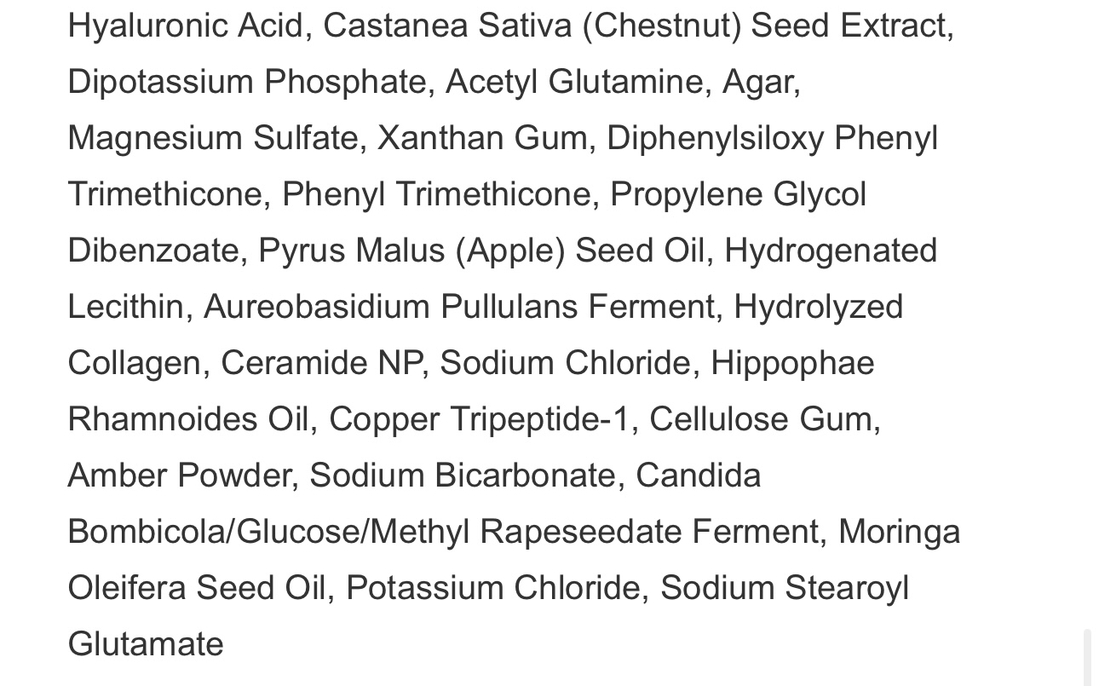 Xylitylglucoside + Xylitol + Anhydroxylitol (комплекс для удержания влаги), Hyaluronic Acid + Hydrolyzed Hyaluronic Acid + Sodium Hyaluronate (разные формы гиалуронки).
