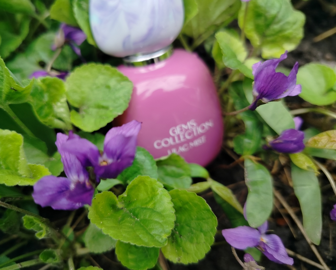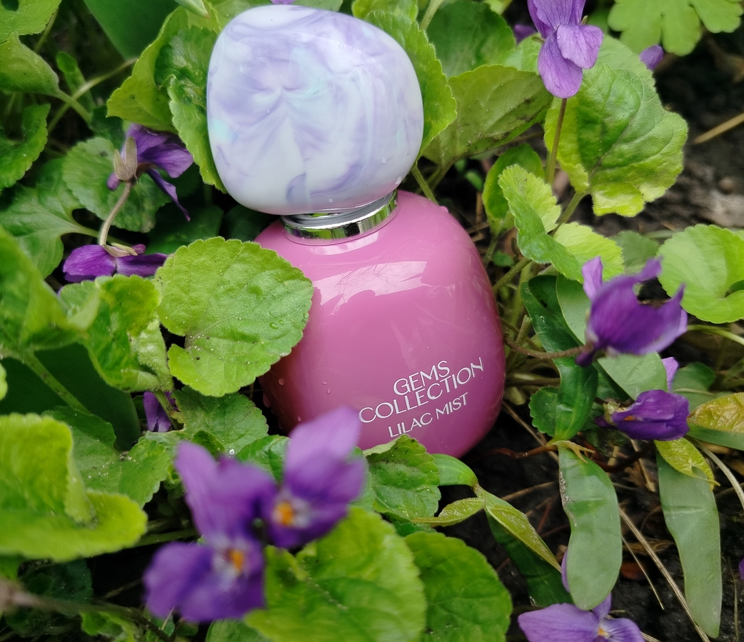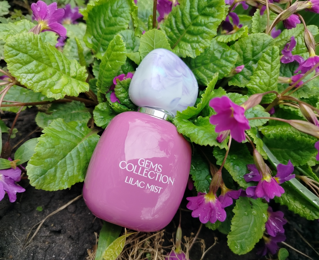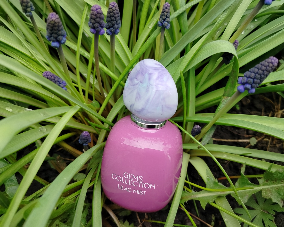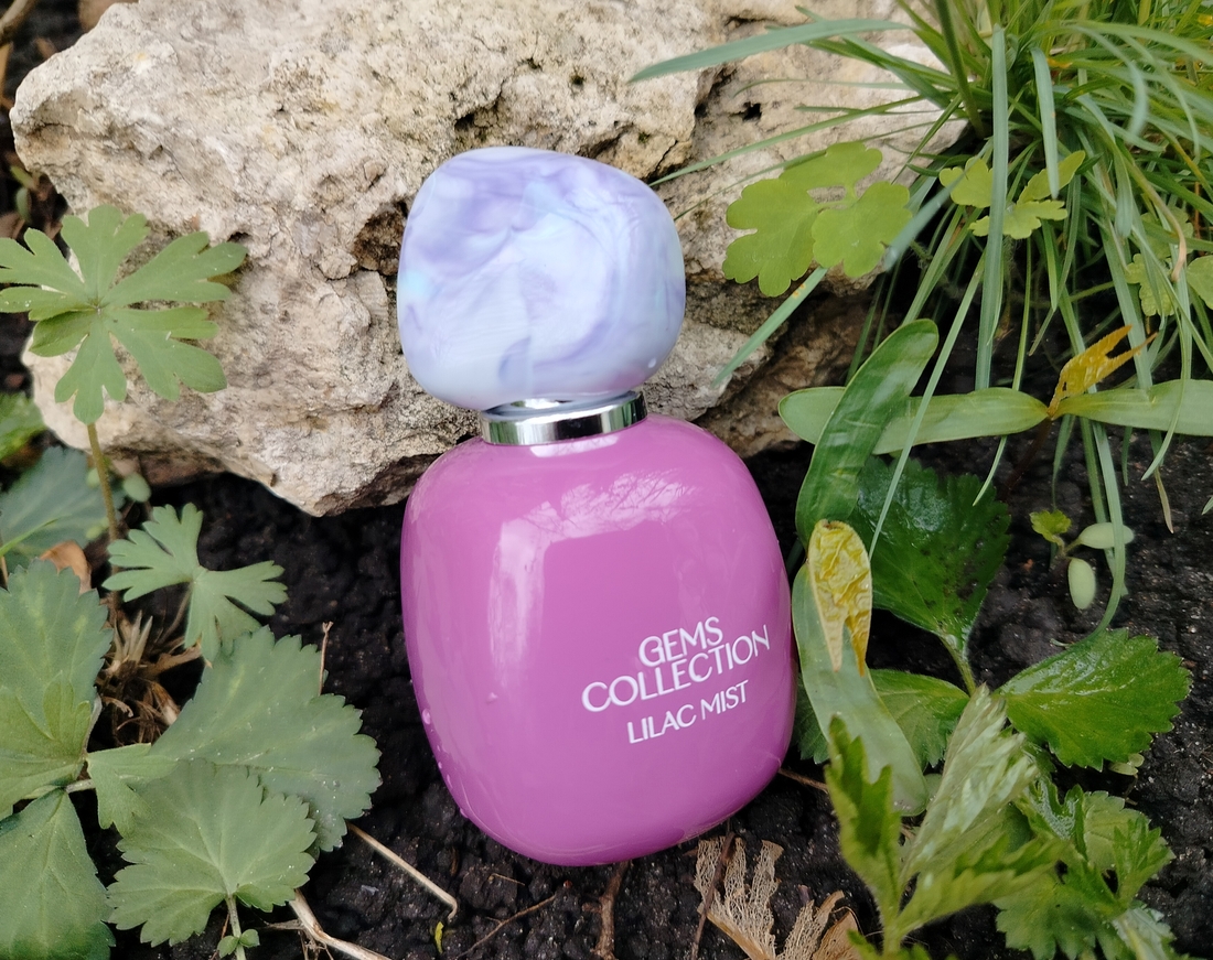 Аромат входит в линейку Gems Collection. Концепция коллекции вдохновлена красотой драгоценных камней и их мистической энергетикой, что отражено в дизайне флаконов, напоминающих ограненные самоцветы с крышками под натуральный камень. Lilac Mistпосвящен чароиту: на старте – терпкость цедры мандарина уншиу и калабрийского бергамота. Раскрываться аромат должен головокружительной сиренью, а шлейф — миндально-пудровый с нотами фиалки, гелиотропа и белого мускуса.