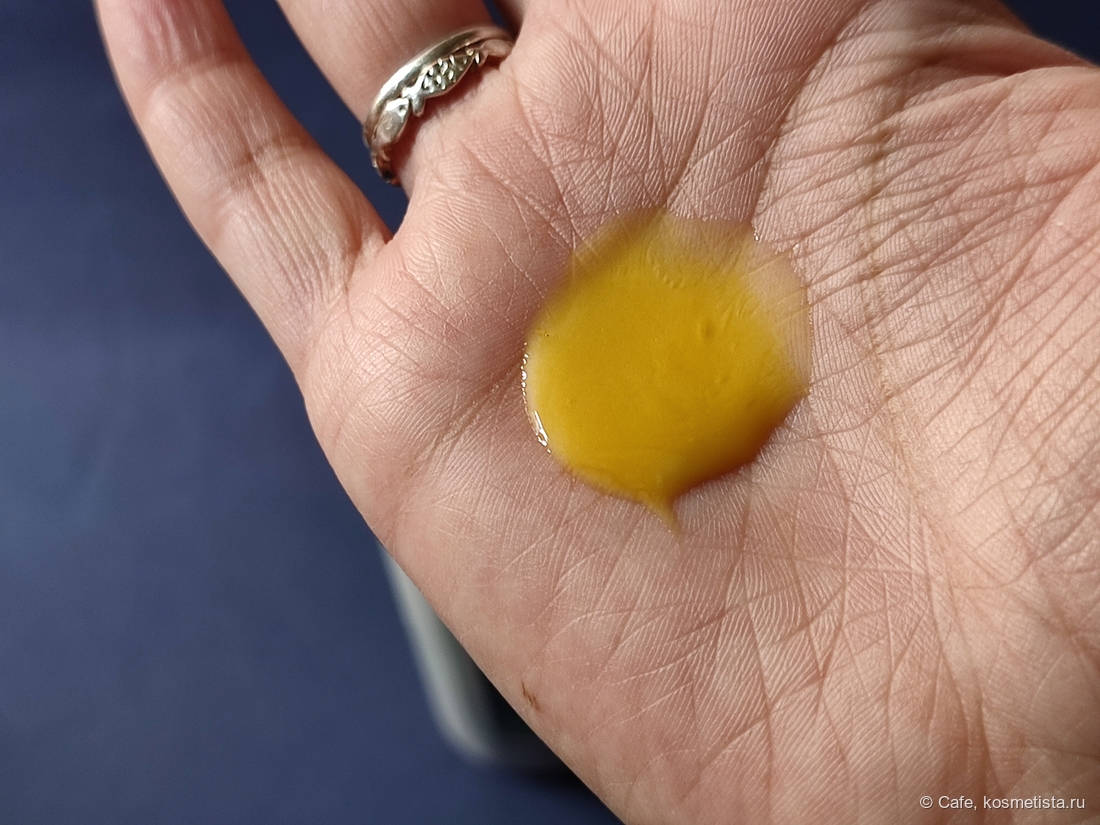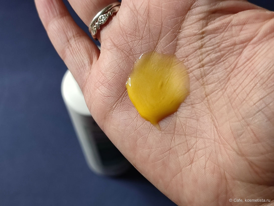 Текстура. Гель средней густоты, в меру текучая жёлтая жижа с лёгким перламутром.