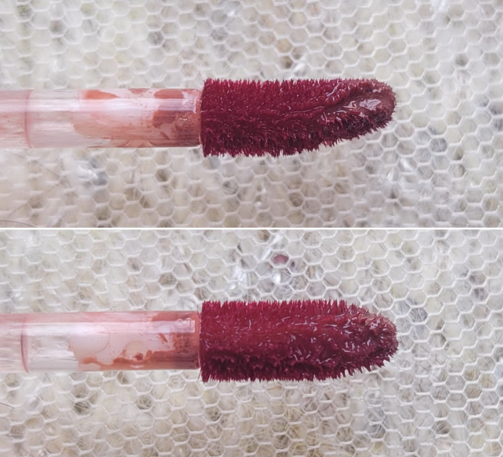 Ограничитель здесь не сильно плотный. Оставляет достаточное количество продукта на аппликаторе, так что мне вполне достаточно одного обмакивания для нанесения тинта на губы.