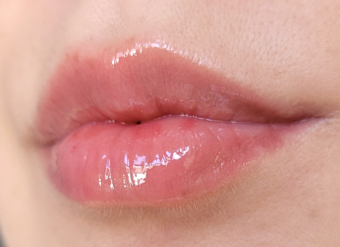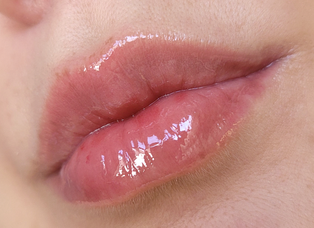 Глянец потрясающе красив! Также отмечу отличную работу с рельефом губ, который у меня досточно выражен. Затеканий я не наблюдаю, что для меня является очень-очень важным качеством.