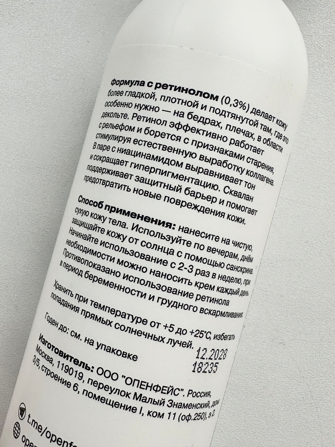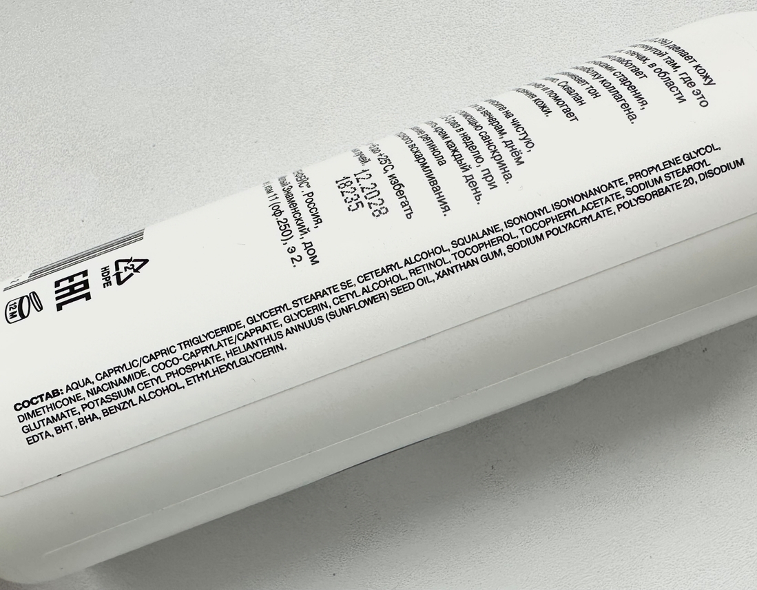 Наношу в режиме через день на сухую кожу тела исключительно вечером после душа, так как ретинол деактивируется под действием света, чередую с увлажнением. Если захотите использовать крем летом, в дневное время на открытые участки обязательно нанесение солнцезащитных средств.