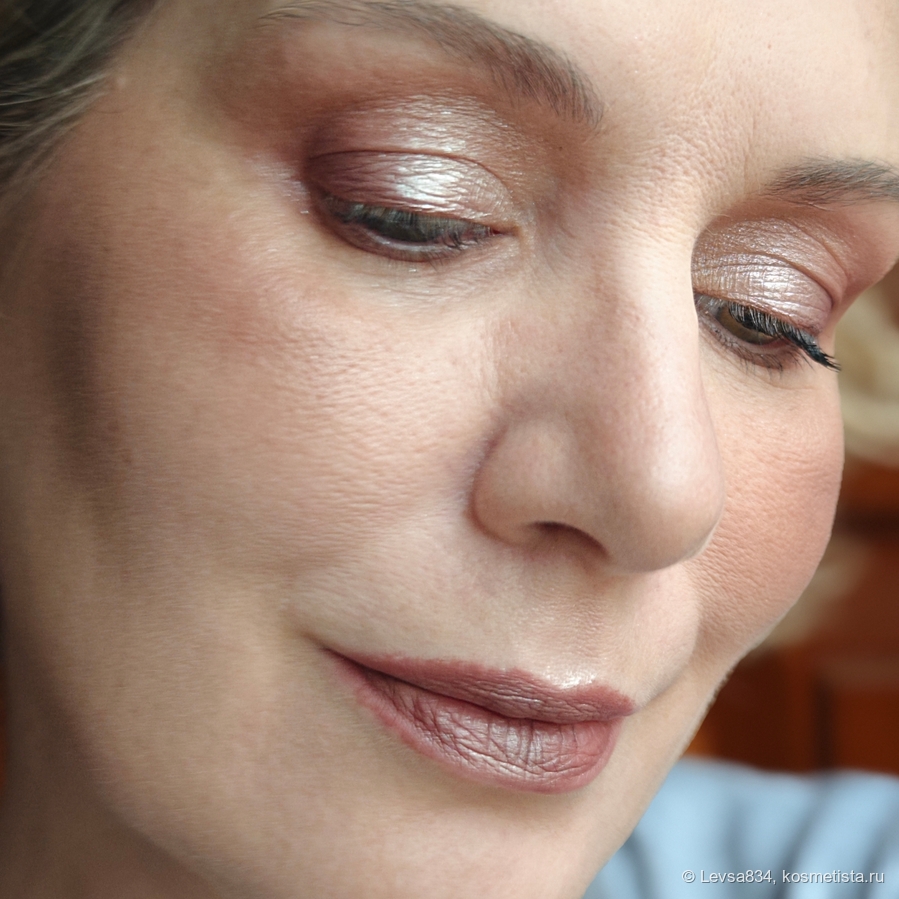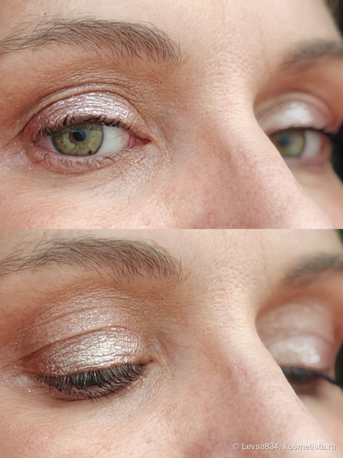 Наношу его пальцем, неплотно. Не растираю особо. При нанесении осыпаний мало, но в течение дня сверкающие частицы могут оказаться на щеках. Правда, скажу, что наношу его на веко без базы. Стойкий, не тускнеет к концу дня. Не раздражает глаза. Что я о нём думаю? Я хожу и каждый раз, глядя на своё отражение в зеркале, восклицаю: вау! Так он сверкает. Больше никаких мыслей, только восхищённые восклицания.