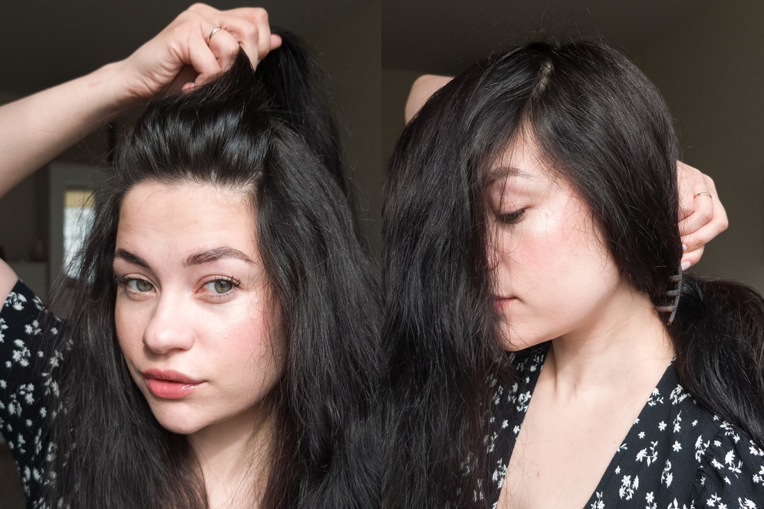 Я держала около часа. После распускания волосы выглядят так. Теперь я брызгаю на корни сухой шампунь, он будет абсорбировать лишнюю влагу и поможет сохранить объем на более долгий срок.