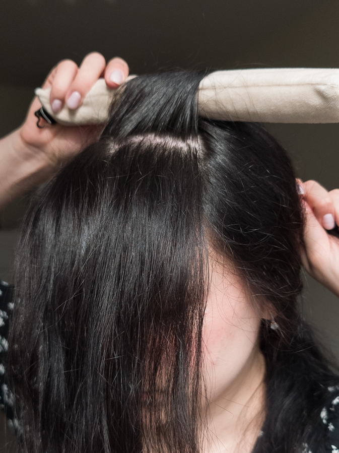 Объем как у Хагрида есть). Расчёсываюсь и перехожу к накрутке. Первыми идут толстенькие бигуди-сосиски в количестве двух штук.