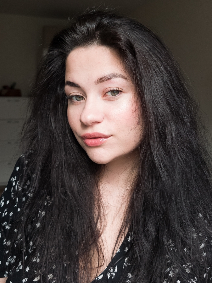 Перед укладкой я помыла голову хорошо промывающим (не питательным шампунем) и нанесла очень легкий кондиционер только на кончики. Это нужно для того, чтобы волосы были рыхленькие, немного взъерошенные, так они будут лучше цепляться друг за друга. В то время как тяжёлый уход будет расправлять их и тянуть их вниз.