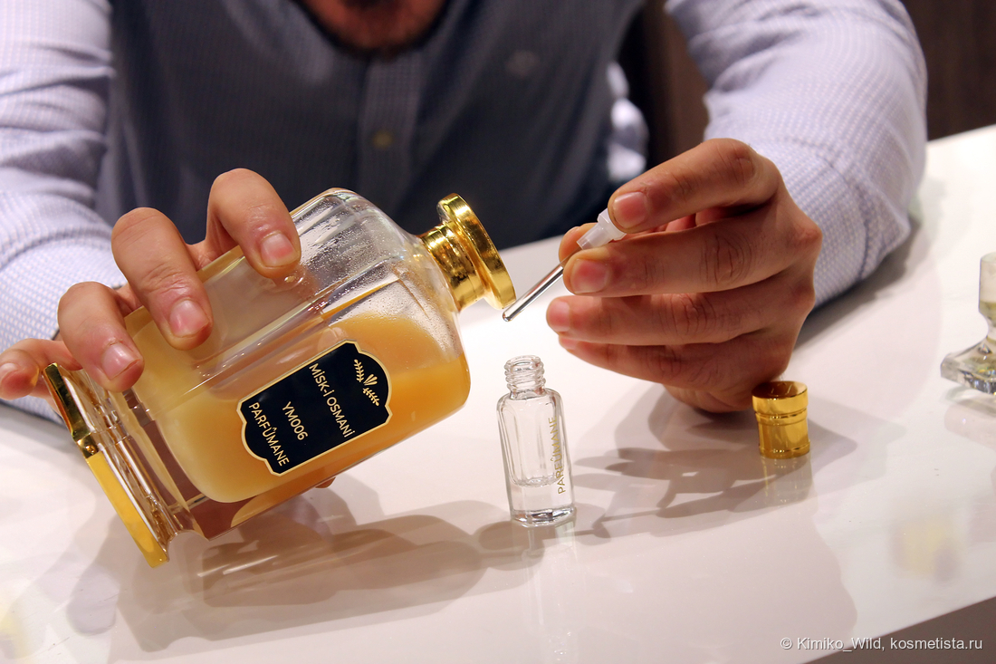 Но я не включила их в детальный обзор, потому что точное название я знаю только для одного (сфотографировала момент, когда мне его наливали). Misk-I Osmani. Густой мускус с оттенками чистоты, намеком на розу и анималику. Вот этот микс у меня действительно ассоциируется с чем-то староосманским и хамамной, «плотно» сидящей на коже, чистотой мускусного мыла.