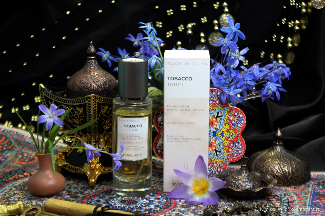 Tobacco – сушеный табачный лист с присущей ему пикантной пряной свежестью, теплом бобов тонка, мягкой сладостью сухофруктов (но ее здесь крайне мало). Табак именно в том виде, в каком мы его знаем по большинству табачных ароматов. Горчинка черного шоколада, кардамон… В описании заявлен дымный табак как «атмосфера старинных сигарных комнат и деревянных интерьеров», но дымность я не ощущаю от слова совсем. И хорошо… Со временем на моей коже аромат подслащивается, обретая какую-то интересную старорежимно-косметическую сладость и даже помадность.