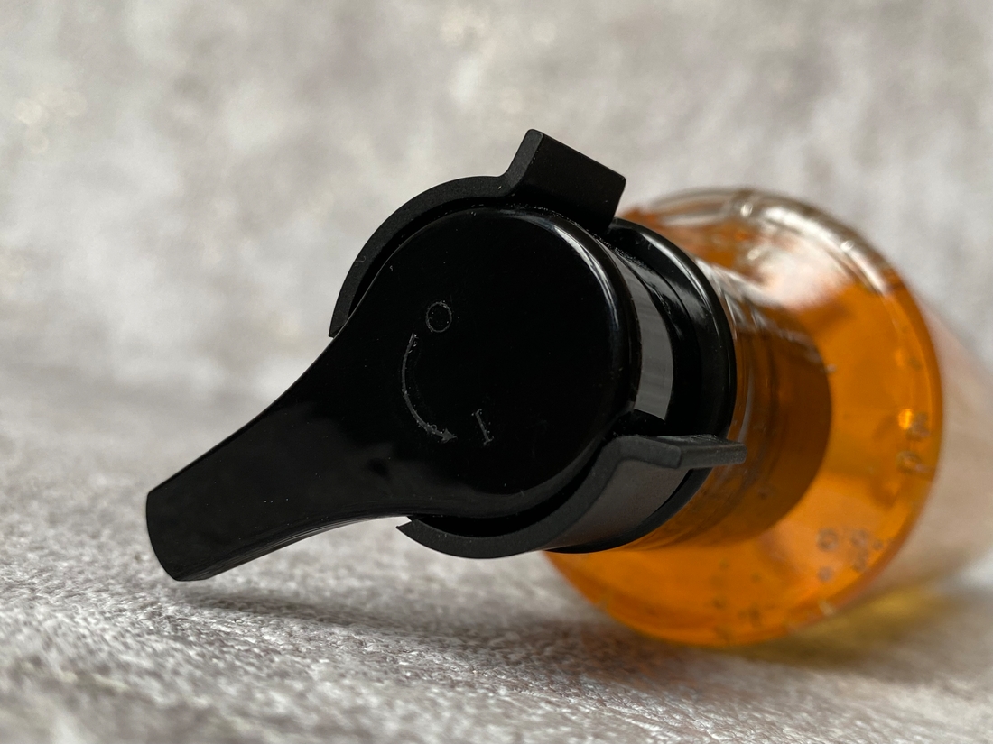 Дополнительно есть стоппер, что особенно удобно, ничего не протекает и не нажимается случайно, даже если средство упадёт.