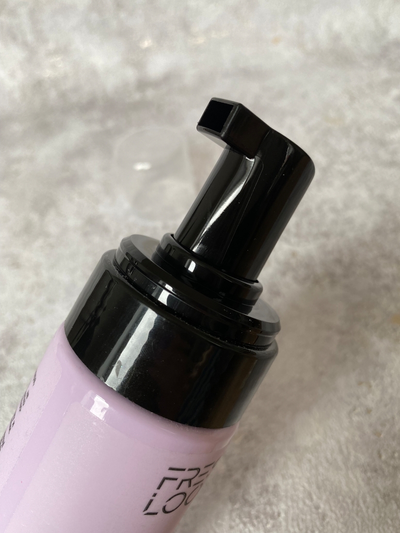 Пенка продаётся в баночке из бледно-сиреневого пластика с приятной лаконичной этикеткой с soft-touch покрытием и удобной помпой-вспенивателем. Упаковка выглядит аккуратно, приятно ощущается в руках и не скользит.