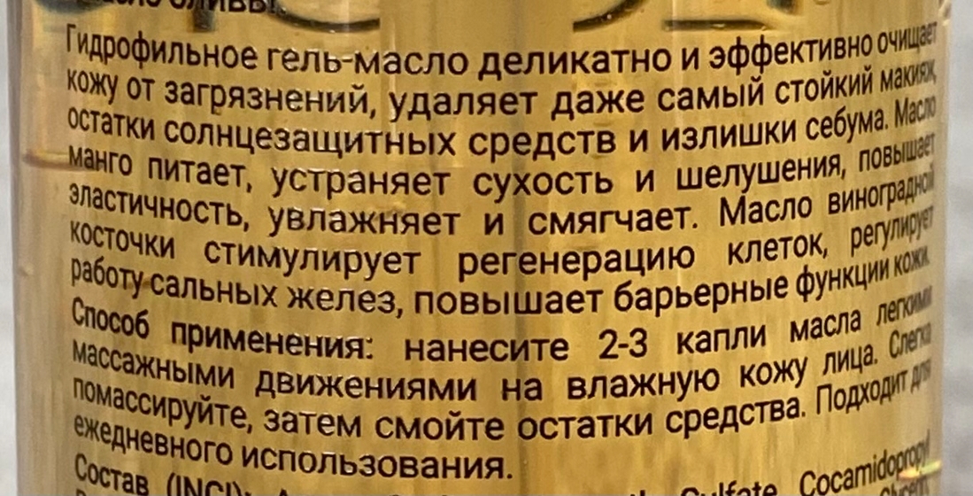 По составу это скорее очищающий гель, чем классическое гидрофильное масло. В основе здесь SLES, который отвечает за активное очищение, смягченный бетаином и глюкозидом. Увлажняющие ингредиенты и масла (манго, масло виноградной косточки, оливковое и примулы вечерней) добавляют питательные и смягчающие свойства. В составе ещё есть антиоксиданты.