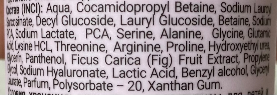 Состав у пенки очень удачный и действительно ориентирован на мягкое очищение без пересушивания. В основе здесь мягкие ПАВы, которые деликатно очищают кожу без агрессивного эффекта «до скрипа». Много увлажняющих ингредиентов и аминокислоты, которые помогают удерживать влагу и поддерживать защитный барьер кожи.