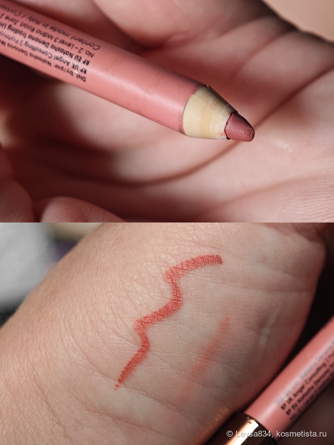 Карандашом для губ подвожу контур, а сами губы крашу помадой. Оттенки не совпадают идеально, но мне нравится результат. Карандаши для губ у Деноны тоже великолепные, мягкие и очень стойкие. Ну, а помады это одна из лучших увлажняющих формул, что я знаю.