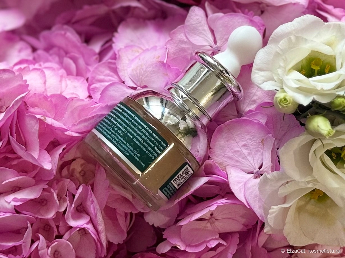 Упаковка выполнена удачно и выглядит красиво. Пипетка качественная, благодаря ей можно набирать ровно столько продукта, сколько нужно. Текстура невероятно лёгкая — будто водичка с полезными веществами. Правда, я советую наносить средство сначала на руки, а потом на лицо, потому что всё-таки оно жидковато.