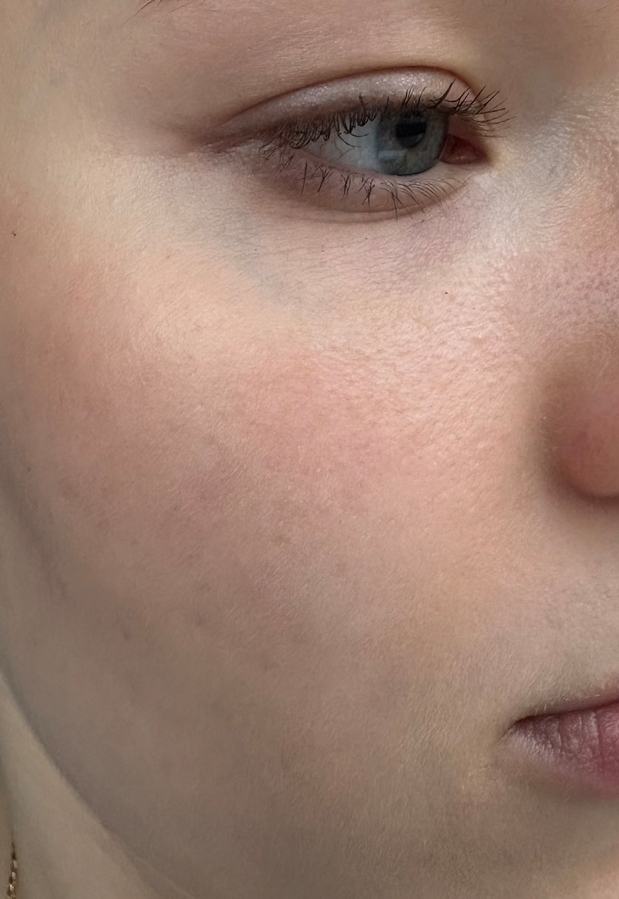 Но мне понравилось невесомое покрытие, как смотрится в целом лицо с ним. Нет маски. Я бы сказала, что тон подходит под эстетику «чистой кожи». Тон выровнен, смотрится симпатично. Добавляю румяна, скульптор по настроению.