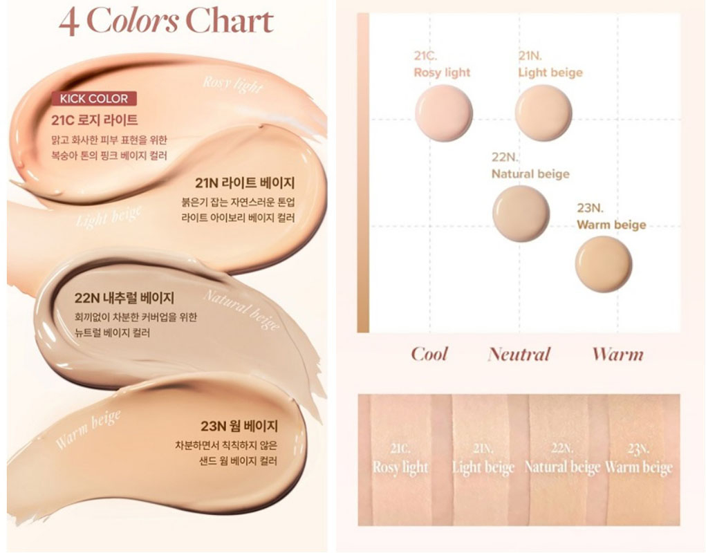 Крем выпущен в 4-х оттенках, что для корейского бренда немало, ведь обычно их бывает всего два.