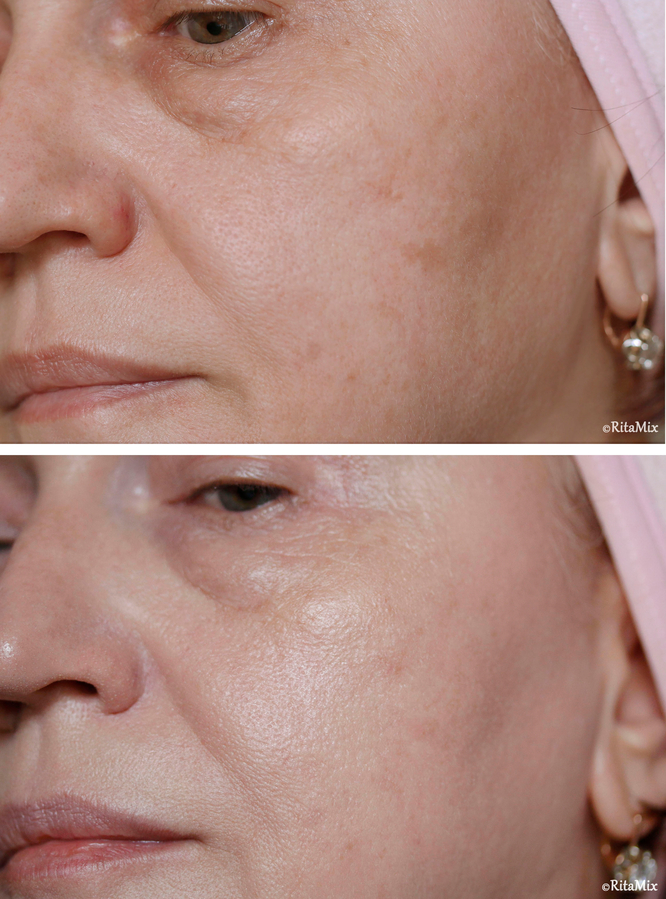 До и после с оттенком 21С Rosy Light.