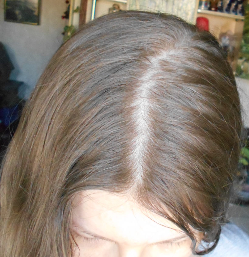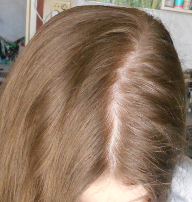 Визуально волосы выглядели тусклыми, прикорневой зоне не хватало мягкости. На фото всё выглядит ещё не так плохо, но мне казалось, что волосы слишком уж «прилизанные» и жестковатые.